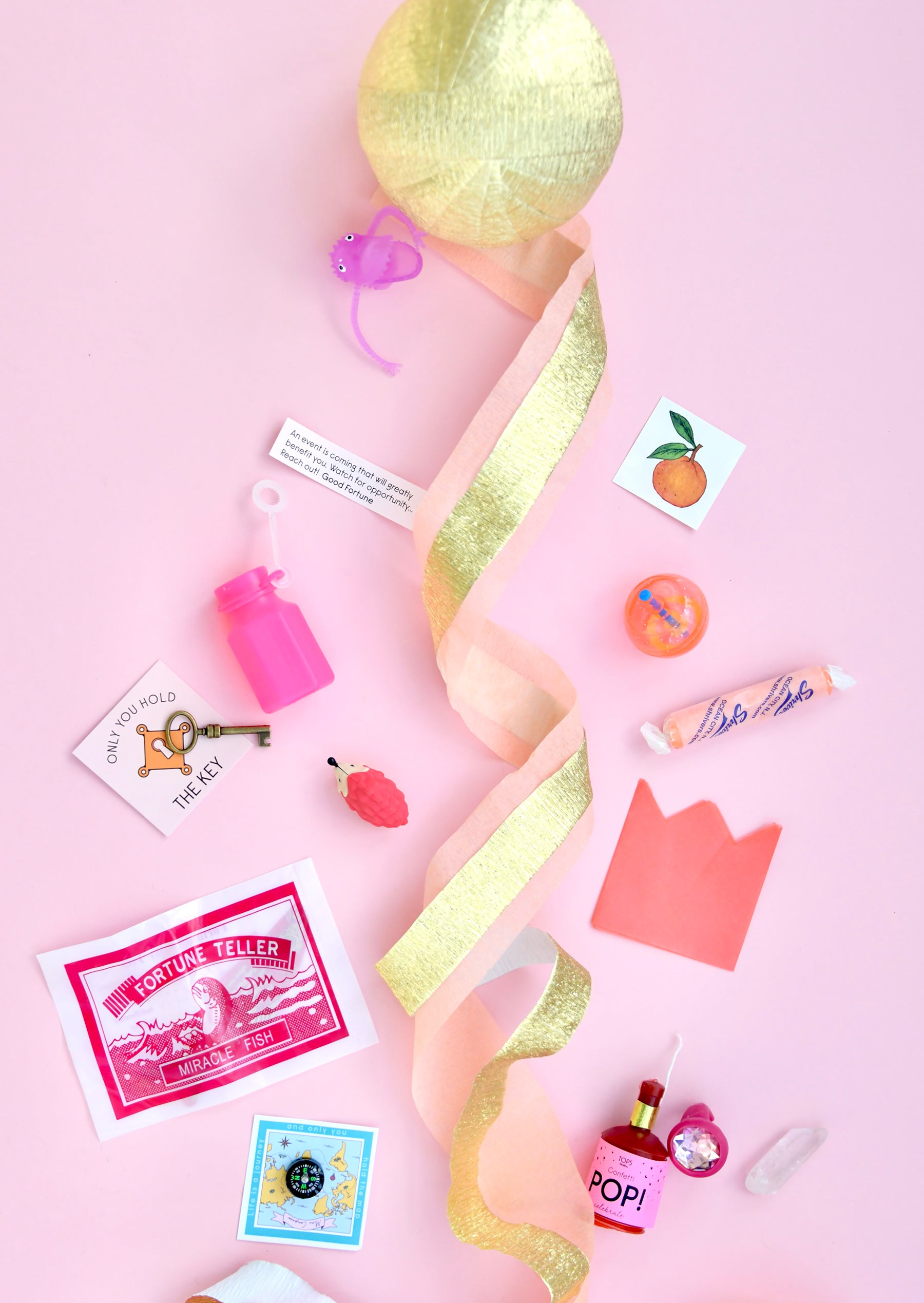 Unwind colorful layers of crepe paper ribbon to reveal many fun treasures inside this festival ball! Surprises include vintage inspired toy, crystal, temporary tattoo, sweet, crown, game and more! Surprise Balls make a great gift, unwind for a fun party game, or an excellent party favor. Create fun memories together!